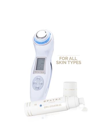 The Opatra Dermisonic is a new light therapy and galvanic device. It has been designed with the latest clinical technologies and offers the following great benefits. Red LED Light: Anti Ageing. The red LED light stimulates the fibroblasts that produce collagen, which in turn can help the skin's youthful appearance. With the application of our anti-ageing creams or serums, the red light helps penetrate then product into deeper layers of the skin, whilst also helping improve blood circulation, expression lines and regenerating cell connections. Blue LED Light: Anti-Bacteria Blue LED light targets bacterial sources, which resides underneath the skin's surface and contributes to the causes of acne. The light assists in the development of oxygen radicals, which help destroy these bacteria, without causing harm to healthy skin. Green LED Light: Anti-Pigmentation Green LED light helps reduce pigmentation, cooling the skin, soothing the skin, improves epidermal hyper-pigmentation, will help evening skin tone, and helps with redness.